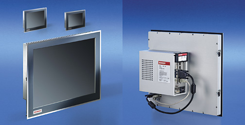 19 英寸面板型 PC C33xx 系列采用 Intel® Core™Duo 或 Core™2 Duo 处理器,配备标准 ATX 主板,提供带 12 或 15 英寸 TFT 显示器的具有最高性能等级的控制器,可选配带字母 PC 键盘或数字键盘,带触摸屏或触摸板。内存可以从 512 MB DDR2RAM 扩展到 2GB。机箱可从前面安装和改装。所有现有以及将来的驱动器,诸如任何容量的硬盘、CD/DVD-ROM、multi DVD 4.7 GB 以及其它驱动器,都可安装在可锁的前盖后。机箱内有 3.5 英寸 和 5.25 英寸的驱动器插槽。另外,还可配装 USB 接口,用于在前盖下方安装键盘和鼠标,借助标准输入设备进行调试和软件更新。此时,所连接的键盘与前键盘同时运行,鼠标与触摸屏或触摸板同时运行。还可安装一个或两个 31/2 英寸硬盘。主板集成的 RAID 1 控制器可以镜像两个 SATA 硬盘。